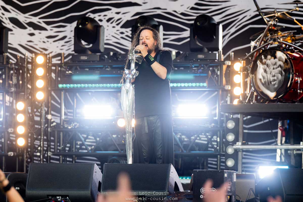Sur le troisième et dernier jour de la première partie du festival, la programmation affichée avait de quoi réunir tout un public hétérogène, sous une journée qui s’annonçait moins chaude que les précédentes. Si on vous dit Judas Priest, Korn, Gojira, Running Wild, Sick of it all, Deven Townsend, et le groupe japonais Maximum the hormone, on vous laisse imaginer dans quel état ont finis les plus de 60 000 festivaliers présents. Les landais de Gojira sur un créneau de 23h15 à 00h45 avait prévu de mettre le feux aussi bien sur scène avec les canons à flamme, qu’auprès du public avec l’ambiance, la musique, et les titres. Pour énormément de personnes présentes, ce fût même le meilleur concert de tous les temps pour le groupe crée il y a plus de 20 ans. Le Hellfest est un festival démesuré, à tel point que le leader de Judas Priest quelques minutes plus tôt est arrivé sur scène au guidon d’une moto pour un des concerts le plus attendus de ce premier week-end. 1h20 de pure bonheur pour Rod Halford du haut de ses 70 ans. Dès la conférence de presse à 18h, le groupe Korn semblait bien décidé à faire ancrer le concert dans les têtes. Jonathan Davis et son pied de micro emblématique de corps de femme, ainsi que les musiciens Brian Welch, Ray Luzier, James Shaffer et Reginald Arvizu ont repris les grands classiques du groupe comme notamment « Freak on a Leash » qui a mis le public sans dessus dessous.