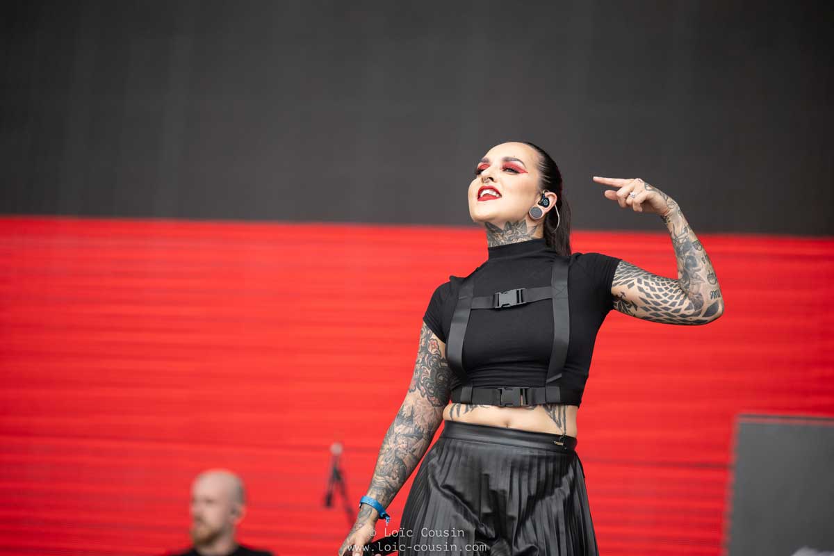 Autre moment fort de ce week-end, c’est aussi la montée sur la grand scène Main Stage du groupe ukrainien « Jinjer » reçu par un public tout d’abord connaisseur, mais également sensible au conflit actuel entre l’Ukraine et la Russie puisque des dizaines et dizaines de drapeaux ukrainiens flottaient devant la scène. Le groupe s’est même offert une photo à la fin du concert comme pour graver ce moment dans le marbre. Un moment fort, émouvant, et un concert qui fut excellent notamment avec sa chanteuse Tatiana Shmayluk à la voix aussi douce que hardcore et la chanson « Pisces ».