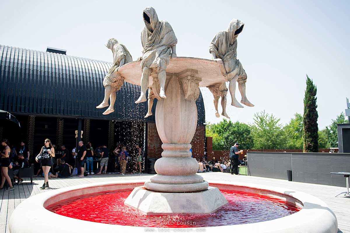 Le site du Hellfest, c’est aussi un village dans le village. Un décor sur-réaliste, des sculptures géantes, des statues, et lorsque la nuit tombe, c’est le véritable enfer, avec une boule de feu géante, des jets de flamme en continue, des spectacles d’hommes du feu, et des lanternes qui illuminent le festival. On y retrouve aussi une grande roue qui permet entre autre de voir tout le site vu du ciel, ainsi qu’une importante variété de stands pour se restaurer ou s’hydrater. A l’extérieur du festival on retrouve le « Métal Corner » où on y trouve un barbier, des tatoueurs, des stands de guitare ESP, ainsi qu’un Extreme Market pour faire des emplettes et trouver des articles collectors.