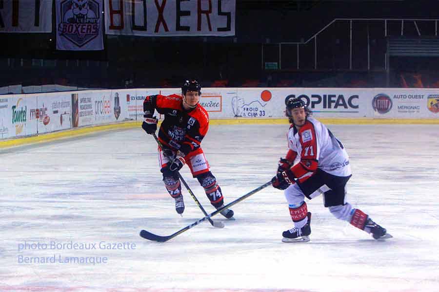 C’est a un match très défensif auquel les deux équipes se sont livrés devant près de 2.500 spectateurs. La patinoire vient de se doter d’un super système à la fois d’information et d’éclairage qui produit aussi des jeux de lumière qui était pour la première fois en marche pour cette rencontre alors que lors de la précédente rencontre un essai avait été fait. On se croirait presque dans une patinoire US et ce système va permettre de suivre le All Stars Game de vendredi soir dans d’excellentes conditions car le système d’affichage est excellent avec un suivi du match en images possible. Ce système facilite grandement le suivi du match par les spectateurs car le système suspendu au toit de la patinoire a quatre face bien sur. Toutes les patinoires en France ne seront pas forcément dotés d’un système aussi perfectionné que celui mis en oeuvre à Meriadeck en faisant une super patinoire.