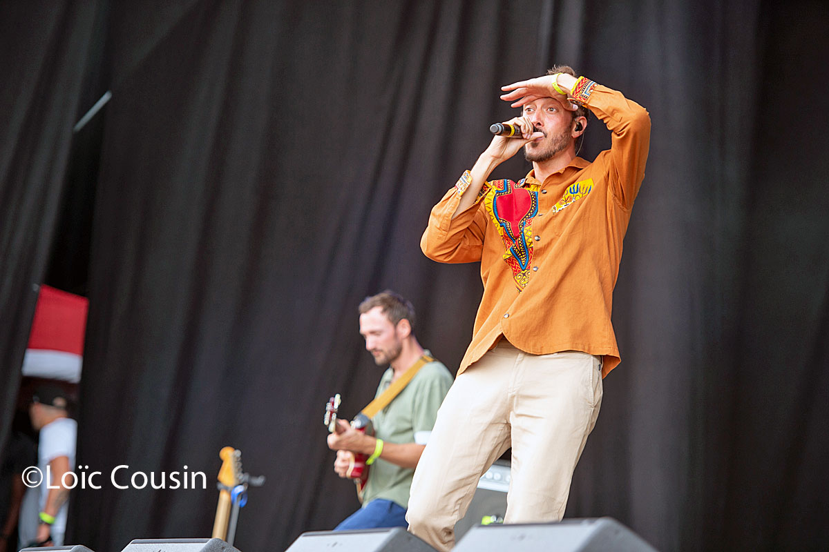 Cet événement musical qui se tient dans un champ, avec une seule et énorme scène, attire beaucoup de festivaliers de tout âge et tout horizon. Ce vendredi 26 juillet 2019 était classé sous le signe du reggae, ska, et dub avec tout d’abord le groupe tremplin Ryon , formé en 2014 en Aquitaine. Sur scène les 5 comparses, enchaînent des morceaux fédérateurs et n’hésitent pas à rappeler entre les titres, l’importance de respecter le mot d’ordre du festival, l’éco-citoyenneté. Le groupe de reggae qui a sorti son deuxième album « Zéphyr » en 2018, joue un concert d’une heure devant environ 3000 festivaliers et sous un soleil radieux. Quelques interactions avec le public, un bon son, une voix atypique du chanteur Cam, un savoureux mélange qui fait de ce premier concert une bonne entrée en matière.