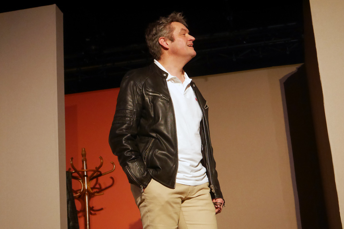 En effet, c’est une pièce de François Bégaudeau que nous propose la Compagnie L’œil et c’est un choix particulièrement judicieux. La confrontation entre deux fortes personnalités. Stéphane qui passait dans la ville, vient rendre visite à sa mère qui, comme souvent les personnes qui vivent seules, se met à parler de tout et de rien sans laisser de place au dialogue.