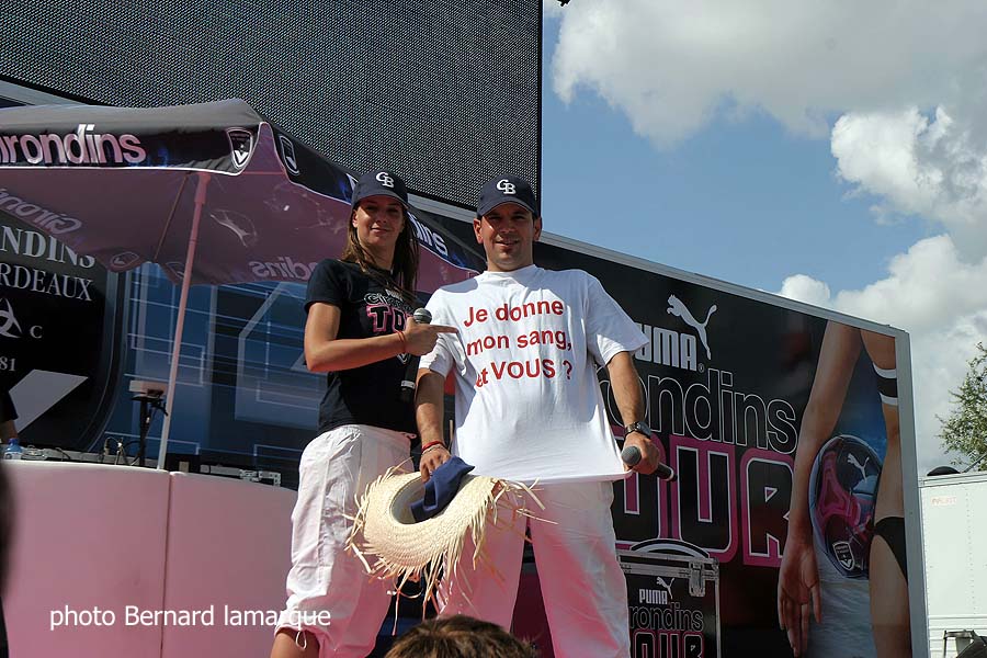 C’est sur le quai des sports à Saint Michel que le Puma Girondins Tour a donné rendez-vous a ses supporters pour leur faire partager de nombreuses activités avant de se transporter à Lacanau. Très grosse ambiance avec une foule de cadeaux et un mini concert très enlevé. Un moment de fête à la rencontre des Girondins de Bordeaux avec son sponsor Puma. La touche de solidarité étant consacré à une campagne pour le don du sang.