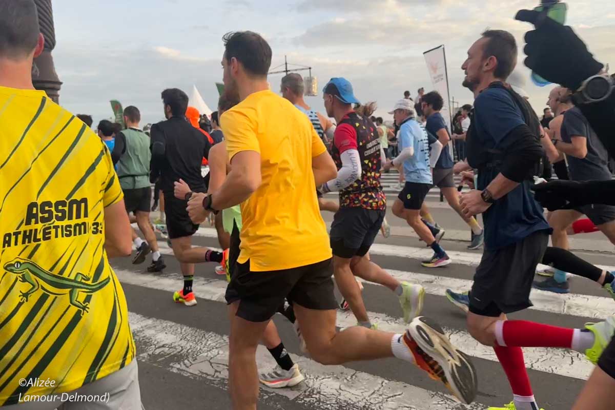 - Départ de la course où les premiers coureurs s’élancent pour le semi-marathon de Bordeaux