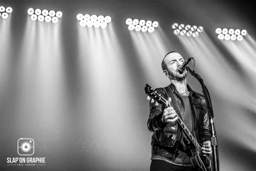 « Liberté chérie » titre de son 7ème et dernier album, mais également titre de la chanson d’ouverture du concert, donne le ton. Une setlist de 22 chansons où l’on retrouvera notamment « je joue de la musique », « le vélo d’hiver », « 1987 », « voler de nuit », « fondamental » de son dernier album mais aussi les grands classiques incontournables « c’est dit », un jour au mauvais endroit », « feux d’artifices », « le portrait », « face à la mer » (sans Passi). Si on sait que les chansons sont reprises par tout un public déjà conquis, le spectacle scène et lumière est toujours une surprise, et encore une fois il ne déroge pas à la règle. 21 spots indépendants et amovibles fixés au plafond servant d’écrans de projection. Un son parfait, des lumières dans tous les sens, et les flashs des portables allumés sur « les feux d’artifices » rendaient la salle encore plus belle.