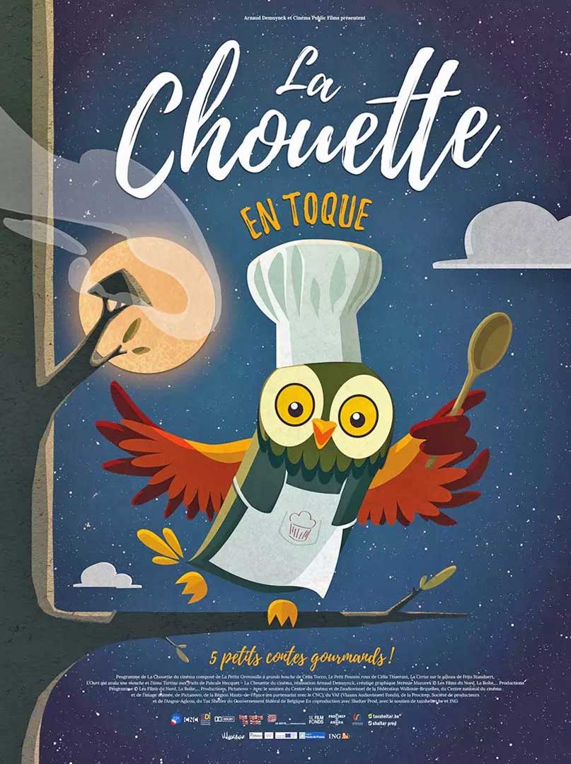Synopsis : Dans ce programme, la Chouette du cinéma aborde avec humour la chaîne alimentaire, invite les enfants à la pâtisserie et évoque la valeur affective de notre nourriture. Elle présente l’adaptation d’un conte japonais burlesque et enchante une chanson populaire vieille de cent cinquante ans ! En plus des cinq fruits et légumes par jour, voici cinq contes gourmands que la Chouette « en toque » a mitonnés avec la magie du cinéma d’animation.