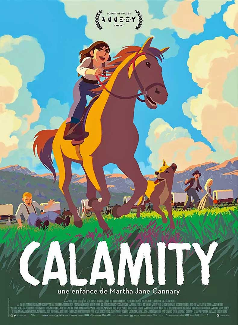 Synopsis : 1863, États-Unis d’Amérique. Dans un convoi qui progresse vers l’Ouest avec l’espoir d’une vie meilleure, le père de Martha Jane se blesse. C’est elle qui doit conduire le chariot familial et soigner les chevaux. L’apprentissage est rude et pourtant Martha Jane ne s’est jamais sentie aussi libre. Et comme c’est plus pratique pour faire du cheval, elle n’hésite pas à passer un pantalon. C’est l’audace de trop pour Abraham, le chef du convoi. Accusée de vol, Martha est obligée de fuir. Habillée en garçon, à la recherche des preuves de son innocence, elle découvre un monde en construction où sa personnalité unique va s’affirmer. Une aventure pleine de dangers et riche en rencontres qui, étape par étape, révélera la mythique Calamity Jane.