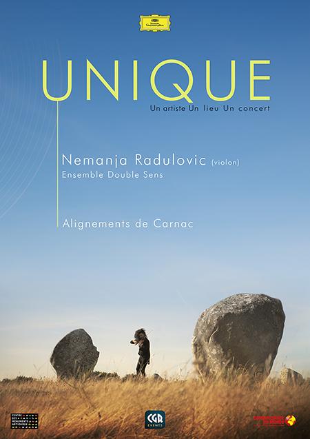 Le violoniste franco-serbe Nemanja Radulović, entouré de son orchestre Double Sens et de la pianiste Laure Favre-Kahn, inaugure ce projet innovant baptisé « Unique | un artiste, un lieu, un concert » avec un concert capté l’été dernier sur le site néolithique de Carnac.