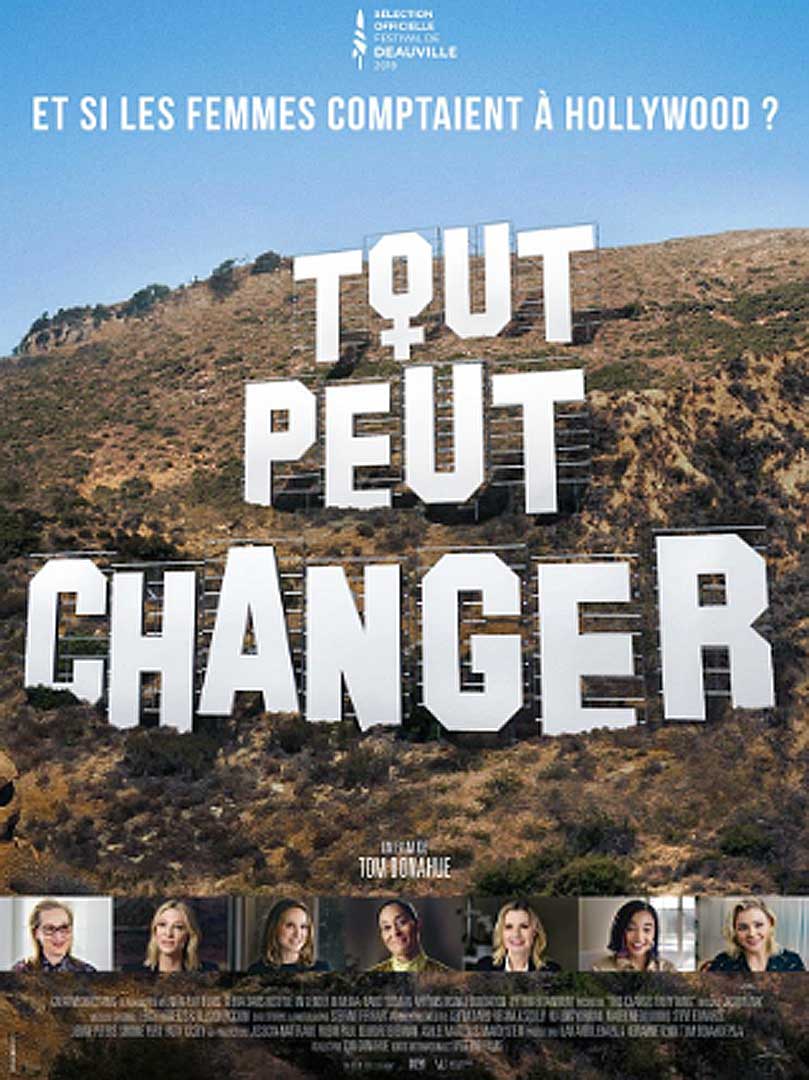 Synopsis : Tout peut changer est un documentaire qui révèle ce qui se cache derrière l’une des aberrations de l’industrie du cinéma américain : la sous-représentation des femmes à Hollywood. Le réalisateur Tom Donahue met en avant des décennies de discrimination à l’égard des femmes derrière et devant la caméra, grâce notamment à une méthode inédite d’étude des données chiffrées, avec, à l’appui, des centaines de témoignages accablants. Plus important encore, le film cherche et propose des solutions qui vont au-delà de l’industrie du cinéma et bien au-delà des frontières américaines, à travers les témoignages de nombreuses voix d’Hollywood, dont Meryl Streep, Cate Blanchett, Natalie Portman, Reese Witherspoon, Sandra Oh, Jessica Chastain, Chloë Grace Moretz, Shonda Rhimes, ou encore, Geena Davis, également productrice exécutive du film ; pour mettre en exergue ce qui peut et doit changer.