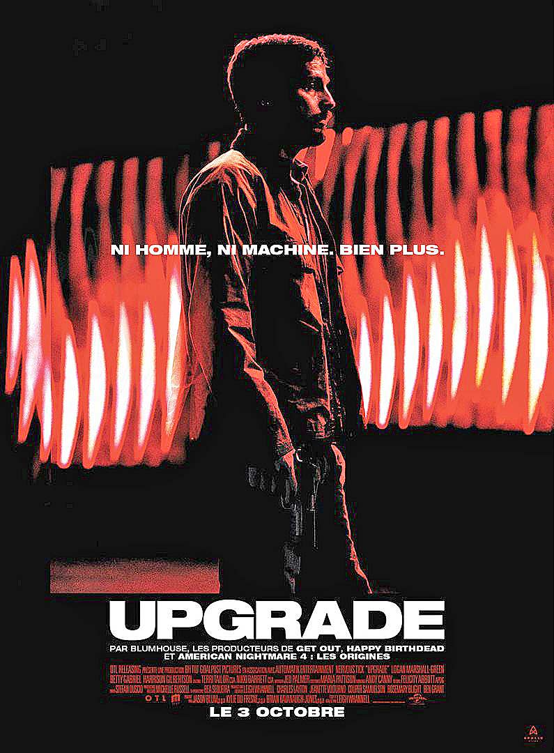 Synopsis : Après la mort de son épouse lors d’une violente agression qui l’a laissé paralysé, Grey Trace est approché par un inventeur milliardaire qui propose de lui administrer un remède expérimental qui va "upgrader" son corps et ses facultés. Désormais doté d’un implant fonctionnant à l’intelligence artificielle, Grey voit ses capacités physiques décuplées et se lance dans une mission vengeresse, afin de faire payer ceux qui ont tué sa femme.