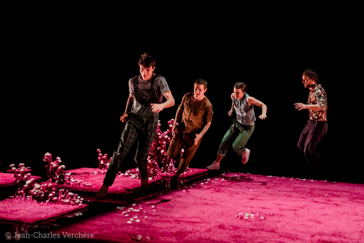 L’intrigue met en scène quatre garçons plongés dans une paisible camaraderie, réunis sur une moquette symbolique. Tout bascule lorsqu’une remarque anodine – « Le rose, c’est pour les filles » – vient perturber leur équilibre. Ce constat devient le point de départ d’un voyage émotionnel et physique, où danse et jeu scénique s’entrelacent pour explorer les concepts de genre, d’identité et de regard social.