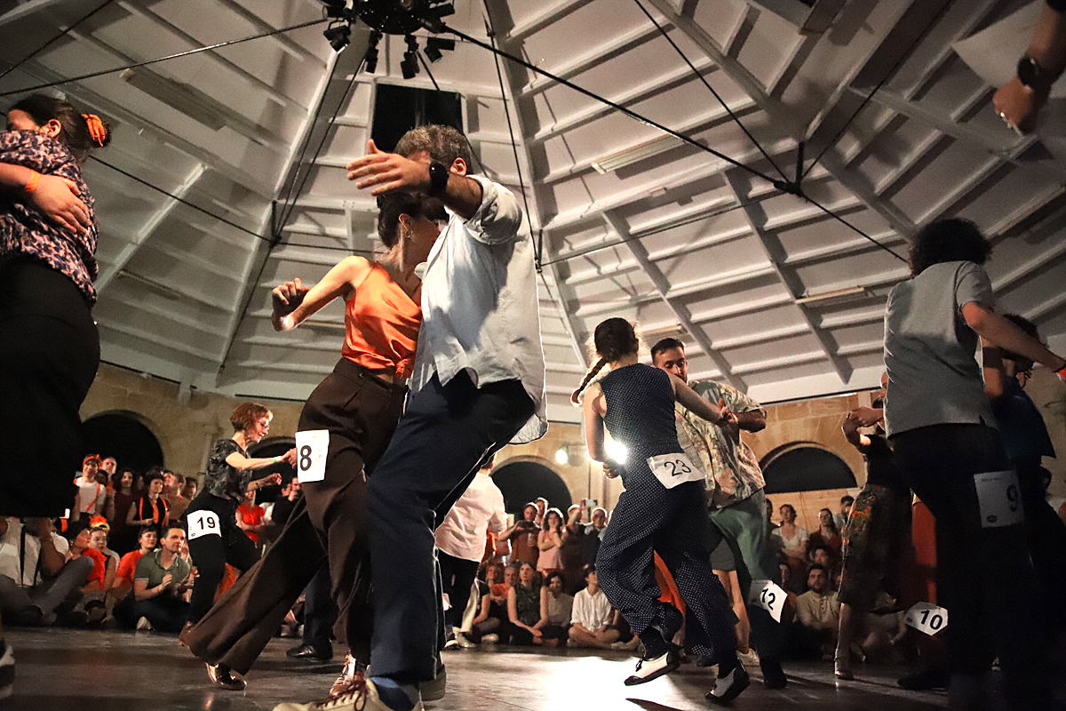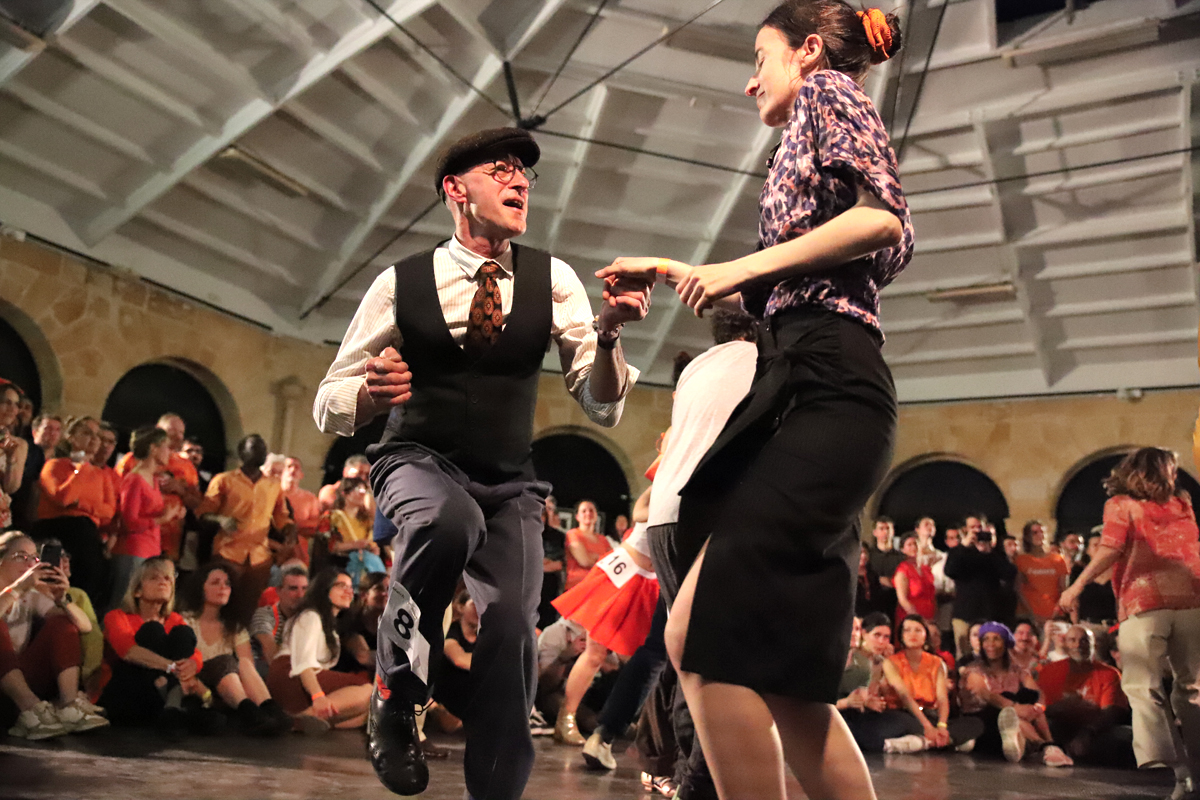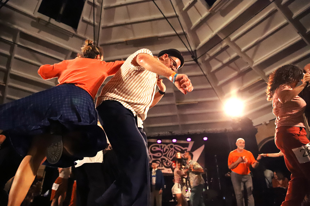 Cette première soirée a également marqué le début des compétitions de Lindy Hop Mix and Match, un format où les danseurs sont associés au hasard et doivent improviser ensemble sur des morceaux joués en direct. Un concours, apprécié pour son aspect ludique et spontané.