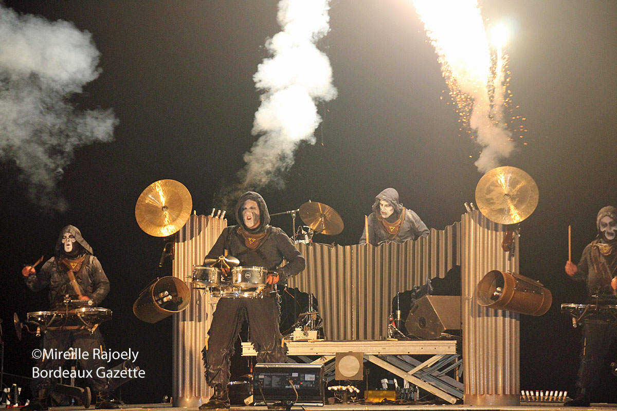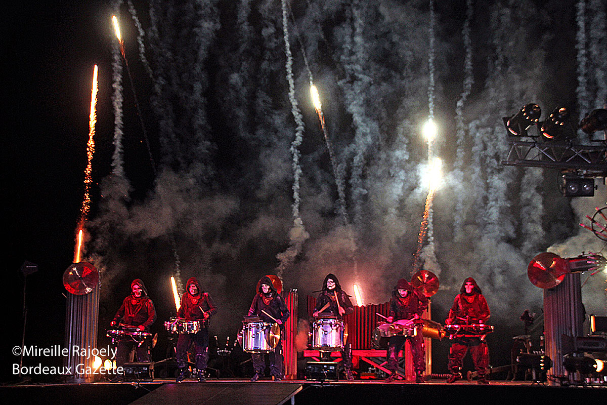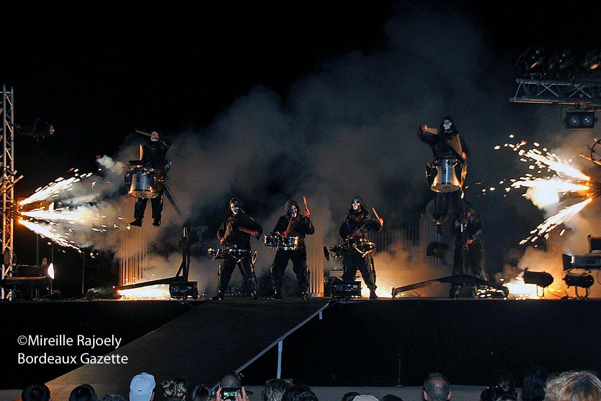Ce spectacle évoque le choc de la percussion et du feu, le besoin d’écouter et de sentir. Après une apparition spectaculaire, les percussionnistes vont à la rencontre des spectateurs et font vibrer leurs tambours au plus près du public.