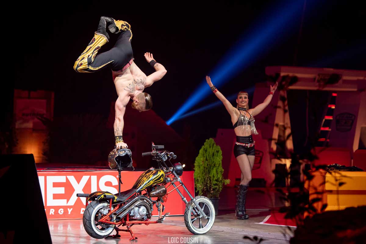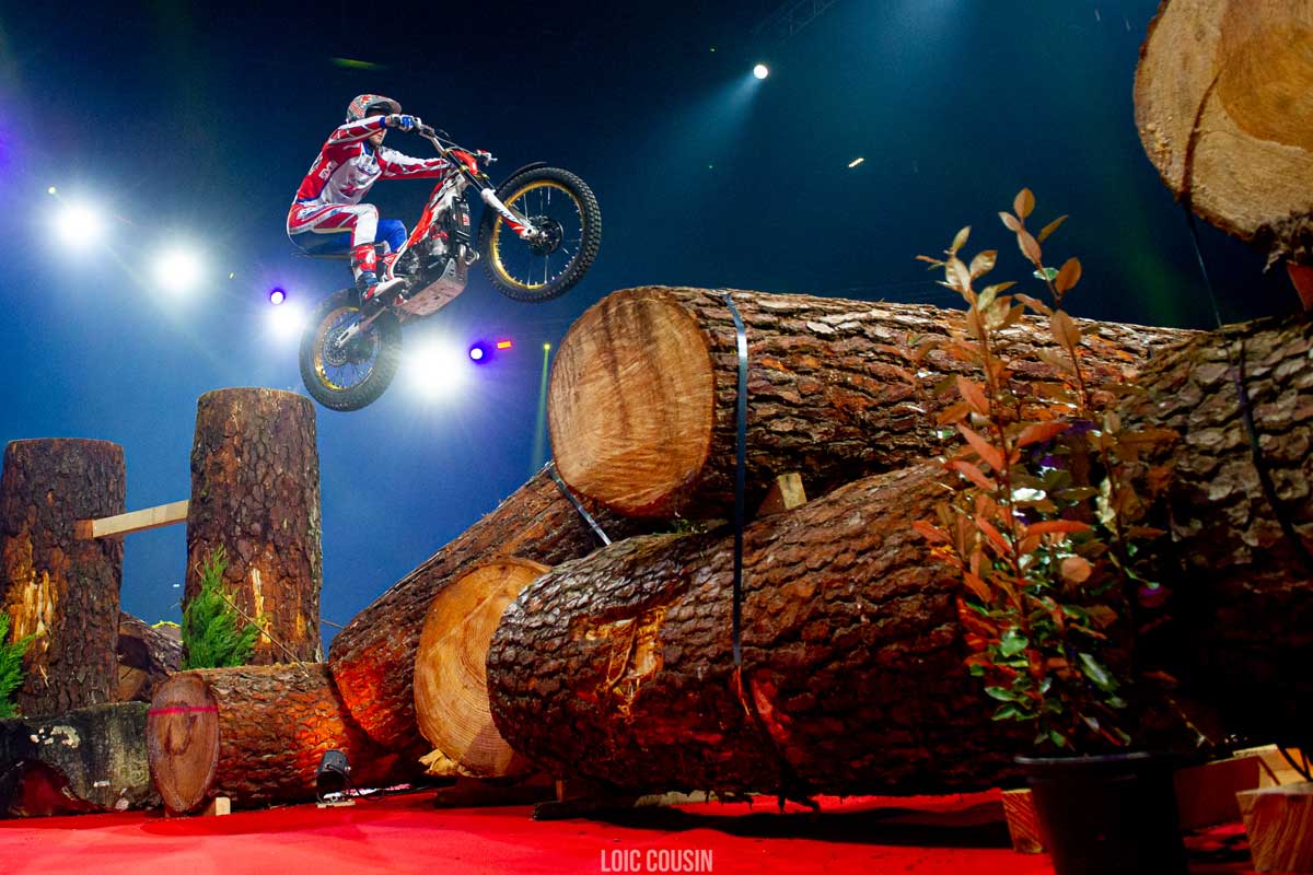 Devant 5500 personnes, pour la deuxième édition du trial indoor international de Bordeaux à l’Arkéa Arena, le spectacle était au rendez-vous. Si le public venu nombreux, a assisté aux performances des 6 pilotes moto en compétition, il aussi pu voir tout d’abord le concert du groupe de blues « Talaho », puis un show de danse du « Studio Attitude ». Au moment de l’entracte, ce sont deux habitués de Bordeaux qui sont venus présenter les performances de haut vol : Tout d’abord Nicolas Vallée n°1 mondial en vélo trial, et Christophe Briand top pilote mondial de freestyle trial qui a réalisé son fameux backflip du haut du spot « Team 33 » . Nouveauté cette année, le show acrobatique de « Mecanic’ Circus » avec un numéro d’équilibriste sur un petit chopper.