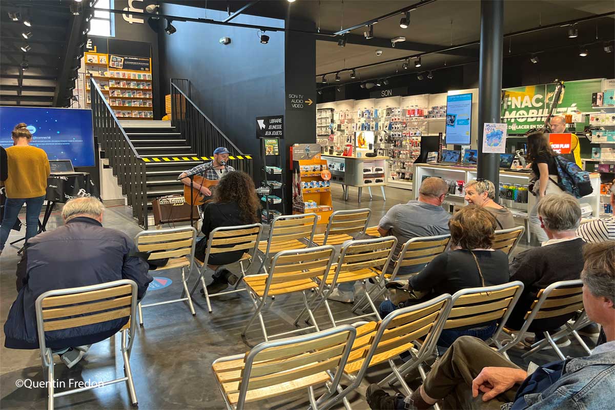Après un concert de Flanagan, artiste folk/rock originaire du Médoc, la nouvelle direction de l’événement a commencé la conférence par une présentation de leur événement. Nous avons appris les différentes difficultés que le festival a connues à la suite de l’épidémie de Covid et à l’émergence des gros festivals prenant une importante part de marché. Cependant, point positif, le festival Musik à Pile n’aura pas à faire appel à des bénévoles cette année après une importante mobilisation. Le souhait pour cette année était de proposer une carte d’artistes attrayante, composée d’artistes à la renommée nationale ou internationale, ils vous donnent rendez-vous les 2 et 3 Juin 2023 à Boma, le quartier général culturel de Saint Denis de Pile. On verra par la suite, que c’est mission réussie pour eux ce qui n’était peut être pas évident pour cette remise en route. Restauration et buvette sur place avec Un bar du festival pensé avec une conscience écologique produisant peu de déchets et issus de commerces et producteurs locaux, et un bar à vin par nos viticulteurs complices. Sans oublier une offre de food trucks diverse et variée