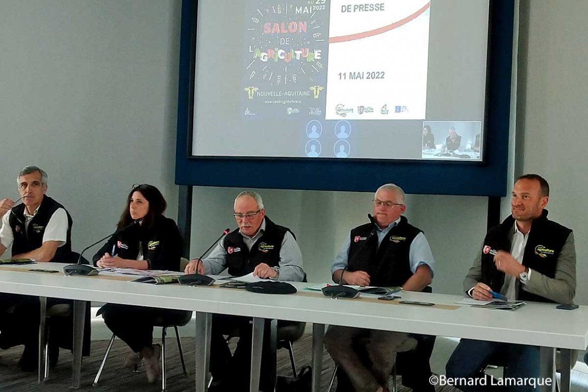 Pour la présentation de ce salon c’est bien sur Dominique Graciet, président de ce salon qui a ouvert la conférence de presse en présentant la chose de façon très humoristique en évoquant le vide sanitaire car il est très vrai que la Covid pendant ces deux années a fait le vide Cela vaut particulièrement pour la Foire de Bordeaux n’ayant pu se tenir ainsi que le Salon de l’Agriculture Nouvelle Aquitaine qui lui a su utiliser le virtuel car cela lui était possible. Il se trouve que le développement digital de ce salon l’a fait progresser et du coup il poursuit son hybridation entre le présentiel et le digital qui lui donne des instruments comme Agriweb.TV pour délivrer son message pour cette plus grande région agricole de France. Il est vrai que les problèmes qui se posent à l’agriculture sont nombreux entre biodiversité et sécheresse, voire grippe aviaire, sans parler des événements ukrainiens qui pourraient surtout l’année prochaine poser un gros problème de fourniture de céréales. L’agriculture de Nouvelle Aquitaine est l’une des premières en Europe, l’une des plus diversifiée et elle à besoin de nouveaux moyens pour s’adapter aux circonstances. "Le salon est l’un des outils qui permet de montrer l’état de ses besoins pour l’avenir et proposer des solutions". Alain Rousset pour cette conférence de presse retenu par ailleurs c’est Virginie Lebraud déléguée à l’agriculture biologique qui le représentait pour l’annonce de ce Salon dans le sillon des affirmation de son président comme "C’est le moment de dire tout ce que fait l’agriculture de notre région. Nous lançons avec la profession, au delà des portes du Salon, l’opération « Chaussez vos bottes » car trop de temps est passé sans se voir. Il faut être partout pour dire que nous aimons notre agriculture et ses produits pour aussi ce que le public veut nous dire et attend de nous tous"