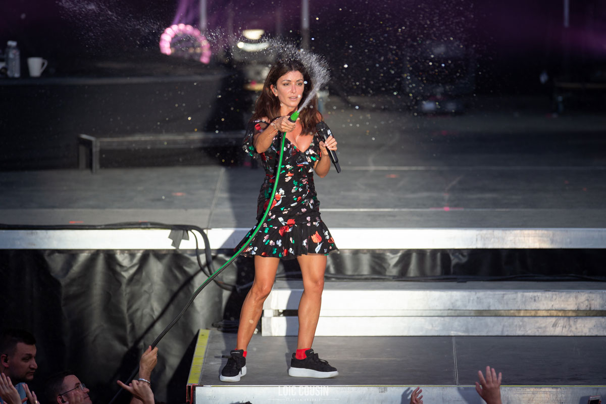 La coach de the voice, et chanteuse Jenifer, sortie la première édition de la Star Academy en 2002, en a fait du chemin depuis son premier titre « J’attends l’amour ». Forte de 8 albums, la niçoise de 36 ans, accompagnée de ses 4 musiciennes, a offert un concert de 1 h 15 avec des chansons calmes, des chansons d’amour, mais aussi des chansons très rock. Les musiciennes de Jenifer font le show, pendant que la chanteuse s’amuse avec le tuyau d’arrosage, à mouiller tout le monde et même les agents de sécurité. Celle qui a gardé son âme d’enfant a interprété ses classiques comme « Ma révolution », « C’est de l’or », « Au soleil », et « Tourner ma page ». Des titres de son nouvel album « Nouvelle page », chantés en chœur par le public, a montré à Jenifer qu’elle pouvait compter sur ses nombreux fans comme avec sur « Mon idylle », « respire », et le duo avec Slimane « Les choses simples ».