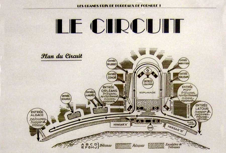 Louis Baillot et l’ACSO décident de passer à la vitesse supérieure. On cherche un endroit pour installer le circuit : le Saint-Emilionnais ou le Pyla ? Deux options offrant un relief accidenté. Bordeaux ? Un choix permettant d’attirer du public. C’est finalement cette dernière solution qui est adoptée. Grâce au terrasses des hangars du Port autonome et aux grilles, on peut faire des tribunes bien protégées pour recevoir un public important. La municipalité qui n’est pas anti-auto se prêtant au jeu, on décide de faire le circuit sur les quais avec une boucle autour des Quinconces. Les contre-allées, jusque-là simples allées charretières, sont bitumées par la ville comme la partie de la chaussée des quais où va passer le circuit. Derrière la colonne des Girondins, l’allée de Los Angeles est créée avec une courbe parfaitement adaptée à la course automobile à l’époque et au... tram aujourd’hui. Le tracé de cette courbe étant conçue par le pilote Albert Divo. Une chaussée qui est alors fermée par une chaîne qu’on enlève uniquement trois jours par an, pour le grand prix de vitesse et ses essais
