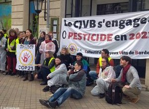 Des activistes du collectif ANV Action Non Violente COP21 Gironde ont "repeint en vert" le CIVB (Conseil Interprofessionnel du Vin de (...)