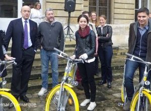 A l’hôtel de ville, Alain Juppé maire de Bordeaux et Philippe Starck ont remis à 20 Bordelais testeurs volontaires, 20 Pibal pré-série. Les (...)