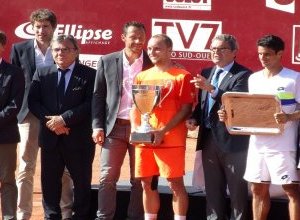 Le belge et pensionnaire de la Villa Primrose Steve Darcis sort vainqueur de la finale du simple face à un Rogerio Dutra Silva très (...)
