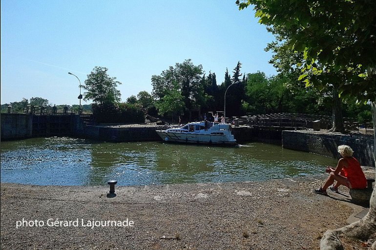 Sur la dernière partie du parcours depuis qu’il a franchi Fonséranes il ne reste plus guère pour Gérard Lajournade qu’une écluse à franchir, l’écluse ronde d’Agde qui fait partie des curiosités du parcours comme l’ouvrage du Libron qui permet au canal du Midi de croiser le cours d’eau Libron dont le niveau peut varier brusquement sous l’effet de violentes averses et il faut pouvoir bloquer ce flot pour permettre aux bateaux de franchir ce croisement grâce à cet ouvrage. Il est passer devant l’Europark Vias plage et après avoir franchi le pont des Trois Arches, il a atteint cette fameuse écluse ronde qui permet de continuer la route via un passage par l’Hérault. Ayant rejoint l’étang de Thau il va passer la nuit à Marseillan plage avant d’éffectuer un premier passage en Méditerranée.