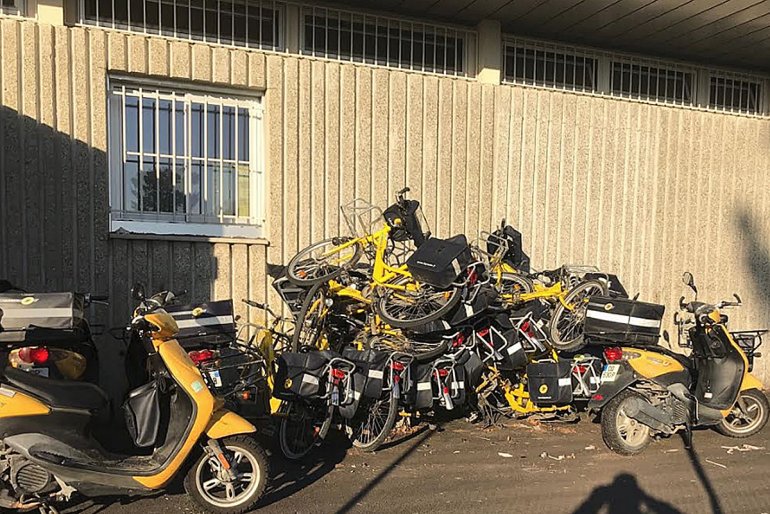 Vu à Pessac, dimanche matin par un de nos lecteurs qui s’est un peu offusqué de la manière dont on range le matériel à la poste à moins qu’il ne s’agisse d’un acte de vandalisme. Comme il a un grand respect pour cet objet que l’on nomme bicyclette, il n’a pu résister à l’envie de faire savoir qu’à la poste on cherche à gagner le maximum de place, voire qu’on est trèx pressé de débaucher, mais on ne sait pas exactement de quoi il retourne !