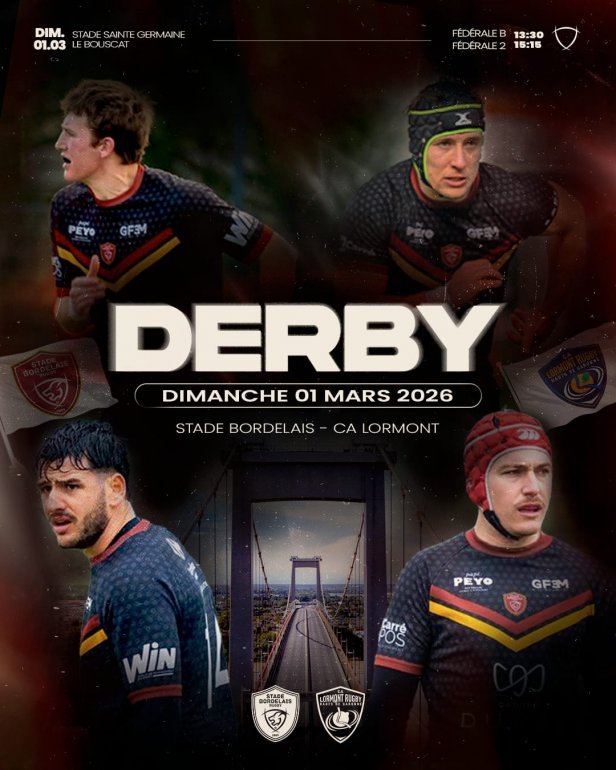 Le Stade Sainte-Germaine accueille un derby 100 % girondin ce dimanche 1er mars avec la réception du CA Lormont par le Stade Bordelais Rugby. Au programme : une double affiche de Fédérale B et Fédérale 2, symbole d’un rendez-vous ancré dans le rugby amateur de la métropole.