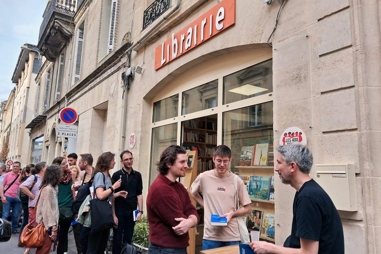 Ce week-end, la librairie Les 400 Coups (36 rue du Maréchal Joffre), dans le centre de Bordeaux, a accueilli une séance de dédicaces pas tout à fait comme les autres. L’auteur et humoriste Guillaume Meurice y rencontrait ses lecteurs… directement sur le trottoir, devant la boutique.