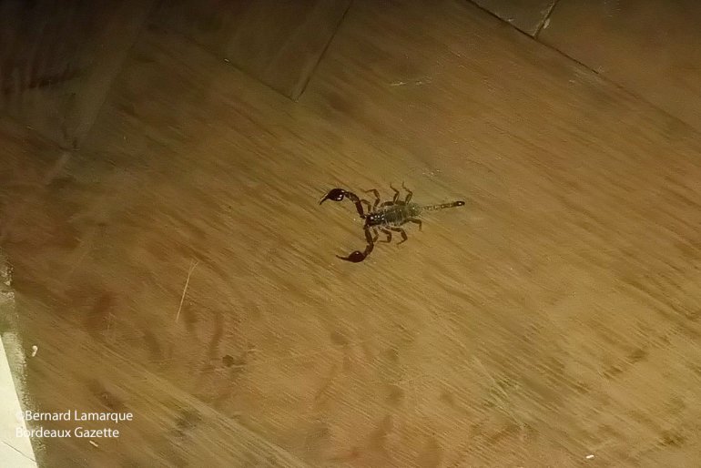 Se déplaçant silencieusement et avec une extrême prudence un habitant du lieu a parcouru une partie du Temple des Chartrons (10 rue Notre Dame) pendant que Fabien Robert répondait aux questions des journalistes présents qui venait de suivre sa conférence de presse sur les journées du patrimoine qui se dérouleront les 20 et 21 septembre en France (en Belgique elles avaient lieu la semaine précédente). Le passage de ce petit intrus à capté l’attention d’une partie des présents et il a été photographié sous toutes les coutures. C’est une spécificité de ce quartier ou dans trois rues on trouve des scorpions qui colonisent le secteur depuis 150 ans car arrivés par bateaux de lointains pays quand on déchargeait les bois sur les quais, l’intrus à trouvé le climat à sa convenance et s’y est implanté et il n’est pas rare d’en rencontrer et les habitants du quartier le savent bien. Peu habitué à faire ce genre de rencontre sous nos latitudes cela se traduit quand on en rencontre un, par soit de la surprise, soit de l’effroi à moins que ce ne soit des deux.