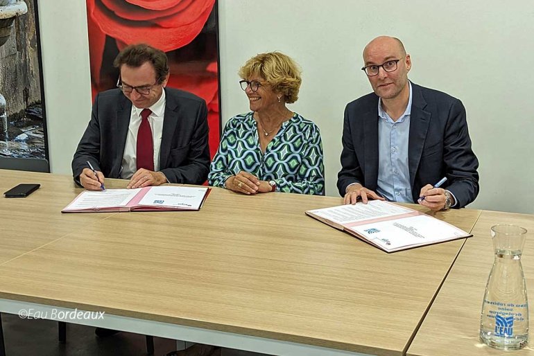 C’est pour la préservation de la ressource en eau que ce partenariat a été signé avec le BRGM (Bureau de Recherches Géologiques et Minières), représenté par son directeur régional, Nicolas Pédron, et la régie de L’Eau Bordeaux Métropole, représentée par sa Présidente, Sylvie Cassou-Schotte, et son directeur général, Nicolas Gendreau, qui ont signé une convention de partenariat pour la période 2023-2027. Le BRGM et la régie de L’Eau Bordeaux Métropole souhaitent ainsi officialiser et renforcer leur collaboration autour de projets communs de recherche visant à préserver cette ressource d’origine souterraine, en quantité et en qualité. Avec la formalisation de cette convention, la régie souhaite s’associer à un expert des aquifères et des modèles hydrogéologiques, pour être accompagnée sur les problématiques de la gestion des eaux souterraines et devenir ainsi un acteur de la recherche en faveur de la préservation de la ressource en eau. Le BRGM renforce, quant à lui, son rôle de conseil et de soutien dans la décision des acteurs publics en charge de la gestion de l’eau et s’affirme en tant qu’acteur du territoire de Bordeaux Métropole. Du côté de la régie de L’Eau Bordeaux Métropole, le suivi de la convention de partenariat et des projets qui en découleront sera assuré par la Direction de la Recherche, de l’Innovation et de la Transition Ecologique. Le choix d’intégrer cette direction en son sein, traduit la volonté de faire de cette régie un acteur de la recherche et de l’innovation sur le territoire. Créée en décembre 2020 par délibération du conseil métropolitain de Bordeaux Métropole, la régie de L’Eau Bordeaux Métropole est un établissement public à caractère industriel et commercial (EPIC*) doté d’une autonomie financière et d’une personnalité juridique. Depuis le 1er janvier 2023, la régie de L’Eau Bordeaux Métropole est l’opérateur du service public de l’eau et non un délégataire comme précédemment sur les 23 communes de la métropole bordelaise, représentant près de 300 000 abonnés.