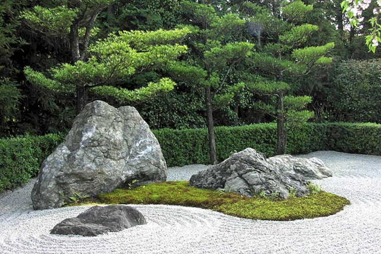 Comme les jardins européens, les jardins japonais ont subi les influences religieuses et philosophiques de la civilisation qu’ils illustrent . Le jardin zen représente la quintessence de la pensée philosophie orientale qui cherche à aboutir au nirvana par la sérénité complète. Mais la méditation qu’inspire le jardin Zen ne va pas sans une symbolique complexe qui commence à l’élaboration même du jardin et se conserve tout au long de sa vie. Une pierre érigée à l’envers, une pierre mise de travers, peuvent, selon les croyances locales, être cause des plus grands désagréments pour le propriétaire. Car les cailloux bien ratissés représentent la mer, les montagnes, les cascades, les vallées, bref tous les éléments que le jardin zen doit rendre favorables.