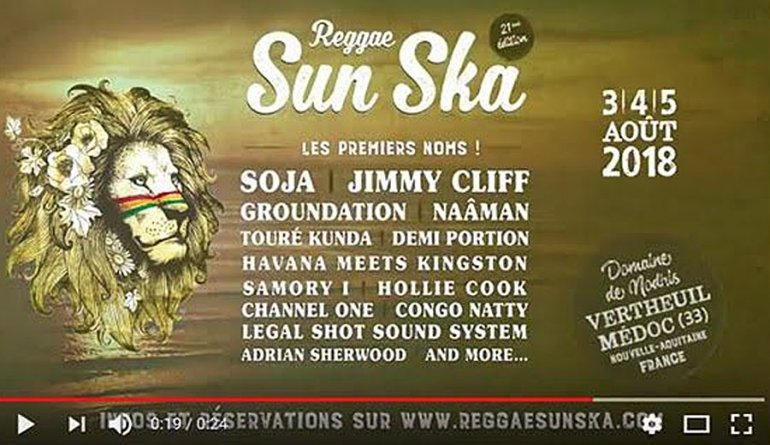 C’est là où il est né que le REGGAE SUN SKA vous donne rendez-vous pour sa 21ème édition ! En effet, après avoir fêté ses vingt ans sur le campus universitaire de Bordeaux Métropole, le premier festival reggae de France a entendu le signal du départ, se réimplante dans le Médoc, et vous accueillera du 3 au 5 août prochains au Domaine de Nodris, à Vertheuil. C’est à quelques kilomètres de l’océan, à l’ombre des pins et à proximité des grands châteaux du vignoble, que l’on pourra planter sa tente en 2018 : le Reggae Sun Ska invite à un week-end de détente en famille ou entre amis, dans un cadre naturel accueillant et généreux. Et en soirée, c’est sous les étoiles qu’on pourra profiter des concerts : voici les premiers noms annoncés ! À l’occasion d’une date unique en Nouvelle Aquitaine, l’honorable Jimmy Cliff nous donnera une leçon magistrale de reggae et de ska jamaïcains, tandis que les Californiens de Groundation, de retour après 4 ans d’absence, rassembleront toutes les générations Sun Ska, et que le groupe de Washington DC, Soja, donnera un show explosif d’énergie positive ! Petit prince du reggae découvert lors de la tournée des plages du Sun Ska 2013,Naâman nous fera naviguer sur son flow groovy, du raggamuffin au hip-hop, alors que Touré Kunda nous ramènera aux racines de la musique africaine, et que le rappeur sétois Demi Portion nous fera penser à un Brassens des temps modernes. Le supergroupe Havana Meets Kingston fera se rencontrer les traditions musicales jamaïcaines et cubaines, tandis que Samory-I continuera d’affoler la planète roots comme il le fait si bien en ce moment. Du côté des représentants du Royaume-Uni, on notera la présence de Hollie Cook (fille du punk et du 2Tone) et de sa pop tropicale, du Channel One Sound System qui nous proposera des dubplates inédits et des steppas enlevés, du précurseur Congo Natty pour le plus grand plaisir des amateurs de jungle drum’n’bass, ou encore d’Adrian Sherwood, grand inspirateur du digital dub et du trip-hop. On retrouvera aussi les habitués du festival, le Legal Shot Sound System et ses pépites rub adub dénichées de par le monde !