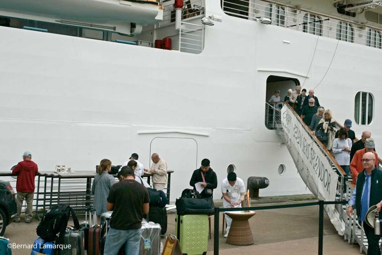 - Certains préparent leur embarquement alors que d’autres vont rejoindre les bus pour les visites excursions.
