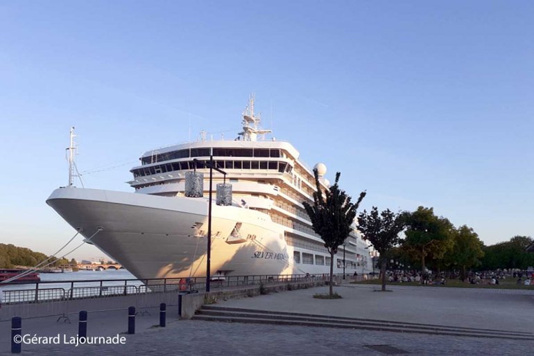 La Lune d’Argent est un paquebot de croisière récent qui a été mis en service il y a peu et qui correspond à un tourisme de luxe car à bord il n’y a que des suites ce qui fait qu’il ne reçoit qu’un peu moins de 600 passagers à son bord. Il ne fait que 216 mètres de long car construit en 2020 il n’est pas dans la lignée des monstres marins construits ces dernier temps. Silver Moon est le jumeau de Silver Muse qui sont des paquebots construit spécialement pour les amateurs de croisières entre calme, luxe et découvertes au contraire de ces Clubs Meds Marins répliques souvent de Végas Flottants ou l’on retrouve une atmosphère particulière de rencontres très populaires. Bordeaux est sa plus longue escale de la croisière démarrée à Lisbonne qui conduira les croisiéristes à Plymouth en passant encore par les ports français de Saint-Malo, Rouen et Honfleur. Il a appareillé après 48 heures à quai dans le port de la Lune ou on a pu longuement admirer cette belle unité nouvelle venue.