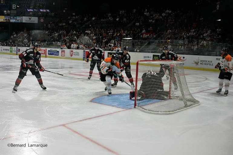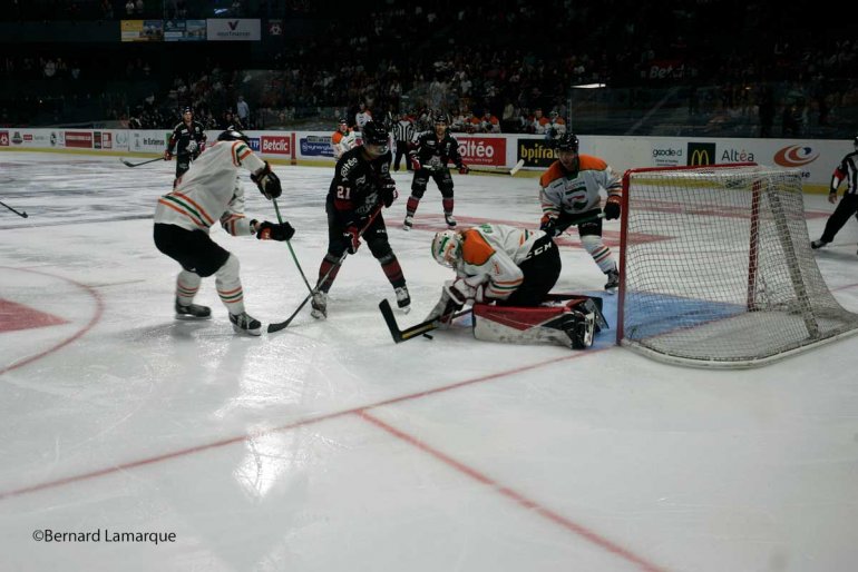 Après être aller gagner sur le terrain de l’Hormadi par 6 à 3 après leur réception à Bordeaux et donc les avoir dominé à Mériadeck et chez eux, les Boxers accueillaient les Patriotes de l’Université du Québec à Trois Rivières en dernier match de préparation. Le public venu nombreux n’a pas été déçu par cette rencontre engagée et rondement mené par les deux équipes pour le plus grand plaisir des spectateurs qui s’est terminée par un rush vainqueur des hockeyeurs bordelais. Si les Boxers ont ouvert la marque par Lemaitre au bout de 7 min 20 s, ils se sont retrouvé mené 2 à 1 à la fin du premier tiers temps suite aux réalisations d’Allais et Tessier pour les Patriotes. Le second tiers temps s’est encore achevé avec les Patriotes en tête mais c’est le troisième tiers temps qui a été haletant et le plus intéressant car les Boxers un instant mené 5 à 3 sur leur glace ont réalisé une fin de match façon Rouen en allant chercher le nul à moins de 2 minutes de la fin par Legault et comme au Hockey il faut un vainqueur, c’est encore Legault qui donne la victoire aux Boxers dans la prolongation car là c’est le but en or. Sur ce match les Boxers ont montré qu’ils étaient capable de passer la surmultipliée en fin de rencontre prouvant qu’ils en avaient encore sous la pédale. Maintenant tous les regards sont tournés vers la réception d’Amiens le vendredi 9 à 20 heures pour l’ouverture de la ligue Magnus avant de se rendre à Nice pour le deuxième match et derrière, il en restera 42 dont la moitié à Mériadeck.