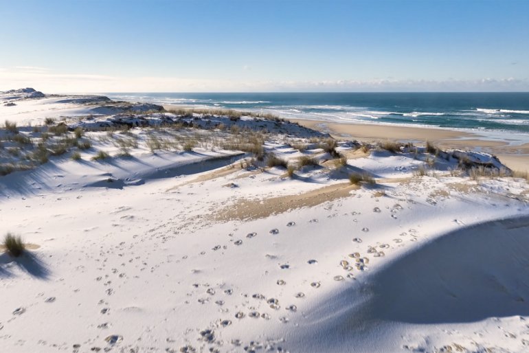 Neige rare à Lacanau : un matin blanc sur la plage en Gironde