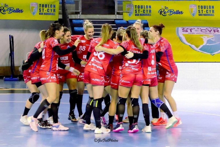 Les Foudroyantes ont fait trembler leur public, tout au moins ceux qui suivaient cette rencontre en direct !! A l’issue d’une stressante séance de pénaltys, les Foudroyantes se sont imposées 30-31 à Toulon et valident leur ticket pour les quarts de finale de la Coupe de France. Dominant et pragmatique, le MHB prend rapidement les devants lors de ce 1/8e de finale et creuse même confortablement l’écart au Palais des Sports de Toulon (37ème min : 08-17). Mais c’était sans compter sur l’expérience et la détermination des Varoises qui, peu à peu, reviennent au score et bloquent les offensives mérignacaises. A la 58e minute, Toulon passe même devant (23-22) mais la Danoise Stine Svangaard permet au Mérignac Handball d’égaliser à quelques secondes de la fin du match (23-23). S’ensuit une séance de pénaltys où Toulonnaises et Mérignacaises trouvent la direction des filets... Jusqu’à ce que la pivot du TSCV, Hawa N’Diaye, échoue face à Léna Le Borgne et tape le poteau.