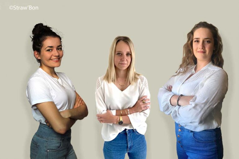 Trois étudiantes de VetAgro Sup viennent d’inventer la paille à boire et à manger. Sarah Bagot, Elsa Perbet et Anaïs Prébet, étudiantes depuis 3 ans au sein de cette école d’ingénieurs agronomes implantée à Clermont-Ferrand (63), devaient créer un produit alimentaire innovant. L’impact dramatique de la pollution plastique sur le monde aquatique les avait vivement choquées. Originaires du Puy-en-Velay (43), de Lyon (69) et d’Argenteuil (95), elles ont agrégé leurs cursus complémentaires. Sarah, Elsa et Anaïs ont alors consacré leurs deux dernières années de formation d’ingénieur à trouver une solution économiquement viable à ce problème. La paille pour boire Straw’Bon®, toute aussi pratique que délicieuse, arrivera bientôt pour le plaisir des papilles et de la planète, … si des investisseurs industriels répondent présent. La recette de la Straw’Bon® est axée sur la réalisation d’un cuir de fruits, obtenu par déshydratation d’une purée de fruits. Ce cuir de fruits est ensuite façonné en spirale afin d’obtenir un cylindre. Ce dernier est trempé dans de la cire d’abeille alimentaire qui permet l’imperméabilisation de la paille et sa tenue dans les boissons froides. La paille Straw’Bon® a été réalisée avec la collaboration du chef Julien Ferretti du Centre de Recherche de l’Institut Paul Bocuse. Dans le futur, la paille Straw’Bon® pourra être produite à partir des invendus de fruits et légumes des producteurs. Elle contribuera ainsi à la réduction des déchets non seulement plastiques mais aussi alimentaires. Après avoir servi à boire, la paille Straw’Bon® peut se manger. Le cuir de fruits (pomme, mangue, fruits rouges...), sans sucre ajouté, procure un goût fruité et une texture agréables en bouche, alliant ainsi hédonisme et santé. En supprimant tout gaspillage alimentaire, ce positionnement se différencie de la concurrence qui propose :
