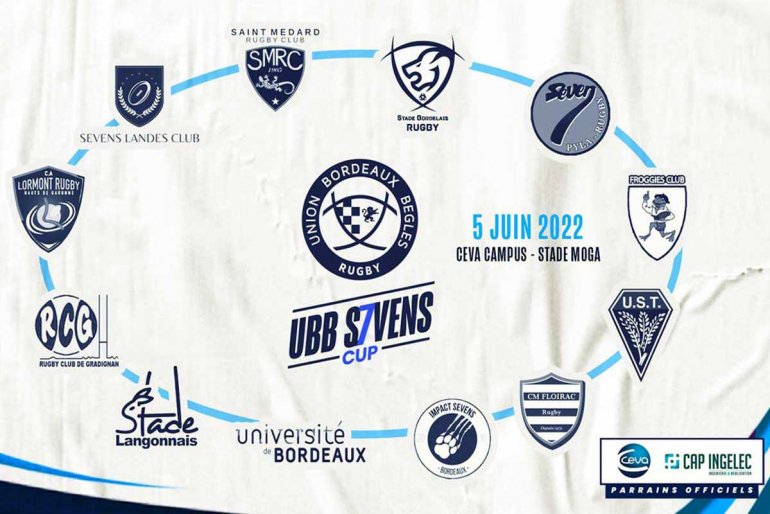 Dans le cadre de détection de talents l’UBB organise un tournoi de douze équipes de jeunes de plus de 18 ans issus de clubs girondins, landais et de sélections Sevens s’affronteront ce dimanche 5 juin de 10h à 20h30 pour remporter le bouclier de l’UBB SEVENS CUP à Bègles sur le stade Moga avec 12 équipes