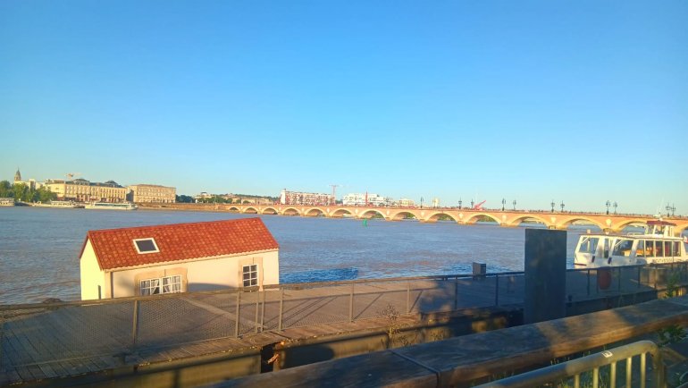 Depuis ce vendredi 27 juin et jusqu’à demain samedi 28, une scène peu ordinaire intrigue les promeneurs bordelais le long du quai Richelieu : une maison partiellement immergée émerge des eaux de la Garonne, juste en face de la Maison écocitoyenne. Baptisée “La Maison des Aléas”, cette structure grandeur nature (plus de 5 mètres de large) a été installée par la Macif dans le cadre d’une action de sensibilisation aux risques climatiques.