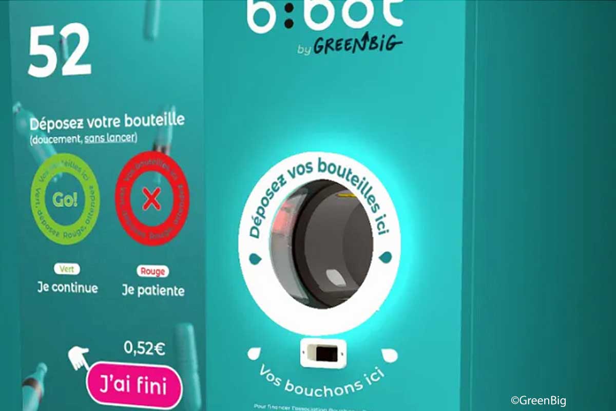 b:bot est une machine de collecte de bouteilles plastique innovante « made in Normandie » qui réinvente totalement leur recyclage en s’appuyant sur une nouvelle forme de consigne, incitative, pédagogique et solidaire. 143 supermarchés de France sont déjà équipés et ce n’est qu’un début ! Avec b:bot, le geste de l’utilisateur est récompensé par des euros distribués sous la forme de bons d’achat ou de dons à une association. Les 10 millions de bouteilles recyclées ont ainsi permis de redistribuer plus de 120.000 euros de pouvoir d’achat aux consommateurs trieurs ! Une fois broyée, la bouteille transformée en paillettes prend 25 fois moins d’espace et est déjà prête au recyclage. C’est ainsi beaucoup moins de camions sur les routes, moins d’étapes de transformation pour mieux réintégrer cette matière recyclée dans le circuit industriel afin de refaire de nouvelles bouteilles. Moins de coûts et moins de pollution pour recycler plus efficacement de façon totalement circulaire.