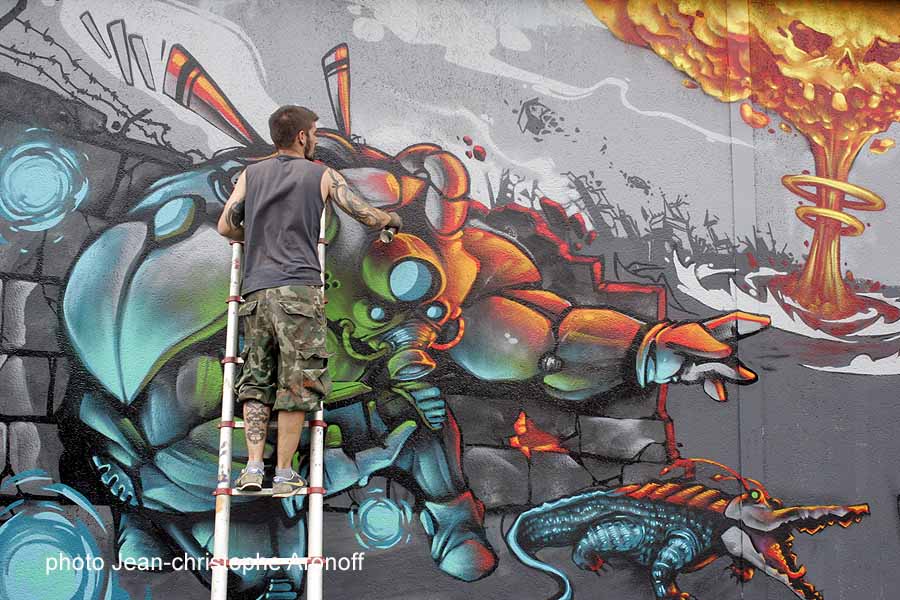 Ce week-end l’ancienne caserne Niel située rive droite quai des Queyries à Bordeaux accueillait des graffeurs venus des quatre coins France et même au delà. Organisé par deux associations 3GC et l’Alchimie l’événement qui durait sur deux jours a laissé place à la réalisation de véritable chefs d’oeuvres. Courtisé par de nombreux visiteurs l’endroit n’en reste pas moins spectaculaire par sa grandeur et les rendez vous culturels qui peuvent s’y produire.