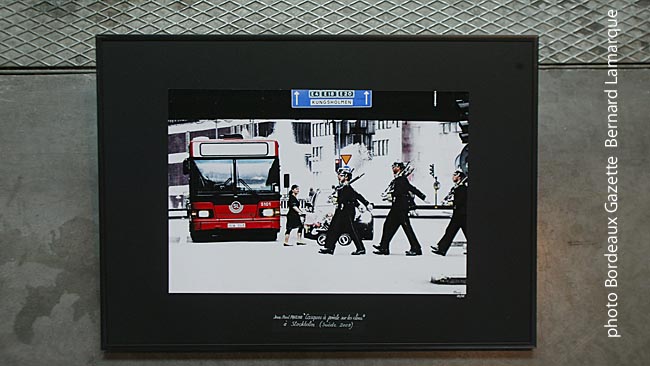 Tous les deux font appel aux ressources qu’apporte l’ère du numérique , Photoshop pour ne pas le citer ; mais d’un numérique bien pensé qui prolonge le travail fait autrefois en labo, en le mettant à la portée de tous les photographes, amateurs comme professionnels. En revanche, c’est uniquement en jouant sur la surexposition et sur le jeu des contrastes que J2P fait ressortir son sujet, comme si l’image résultait d’un détourage, comme ces gardes royaux et ce bus se détachant sur un décor de rue immaculé. « A chacun son voyage » le titre colle bien à l’expo mais aussi au parcours qu’elle propose au visiteur.