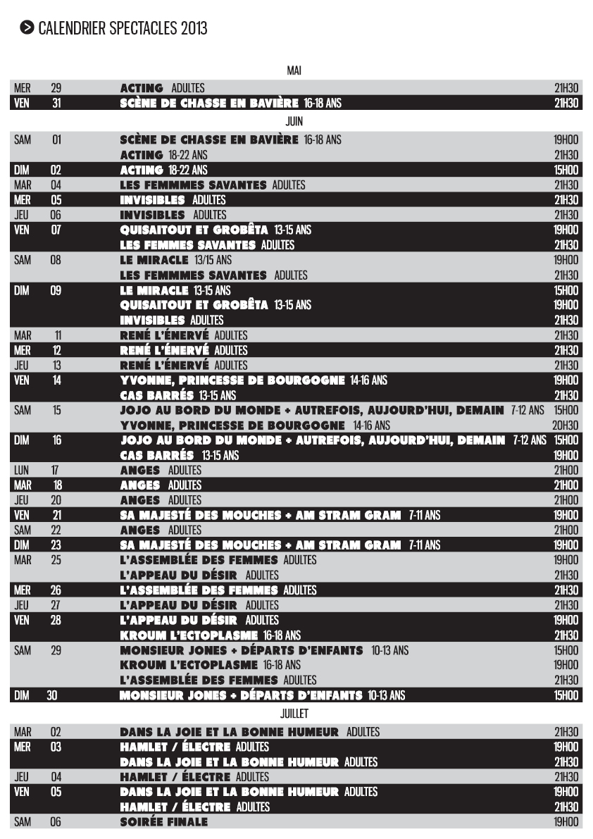 22 années déjà que ce festival de Théâtre Amateur rassemble dans un même élan répertoire contemporain et plus classique, offrant au spectateur un panel de spectacles variés, faisant découvrir les plaisirs du théâtre au plus grand nombre et partageant les richesses du répertoire et de la création.