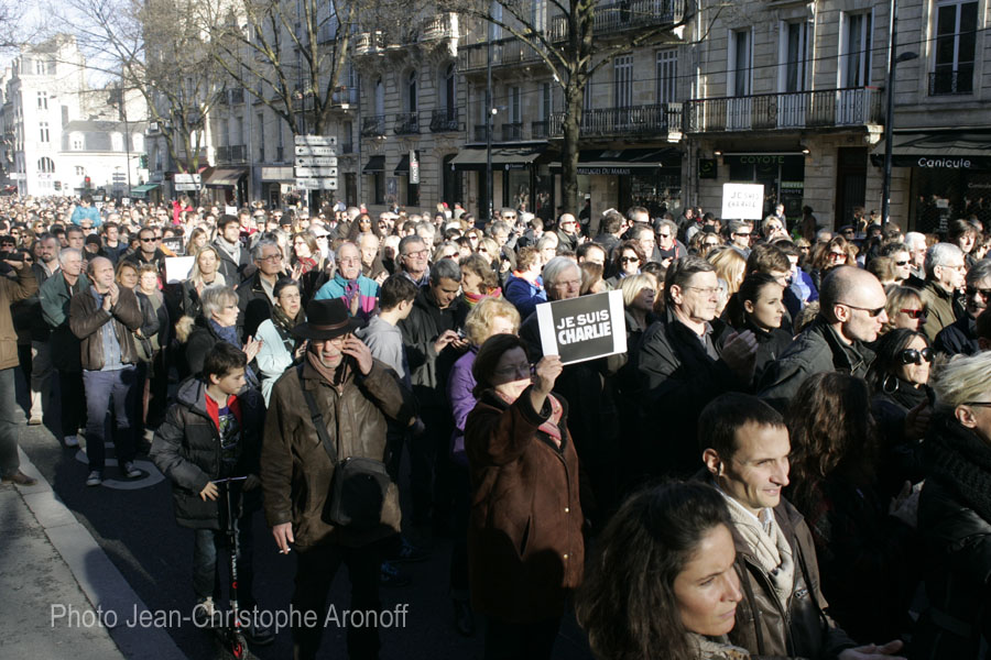 Dimanche 11 janvier, un grand rassemblement citoyen s’est tenu place des Quinconces à Bordeaux. Journalistes, personnalités politiques, représentants religieux et diverses associations, suivis de milliers de personnes, étaient tous unis pour une même cause rendre hommage aux victimes des attentats qui se sont déroulés cette semaine en France.