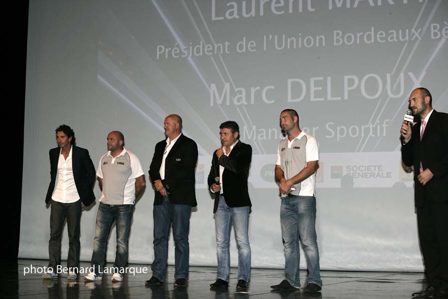 Après un historique de la genèse de l’UBB, né de la fusion du Stade Bordelais et du CABBG qui ont été les clubs emblématiques de l’agglomération avec pour l’un, une assise universitaire (SBUC) il y a de cela deux siècles et pour l’autre une assise populaire. Ce sont Arielle Piazza au nom d’Alain Juppé, Franck Joandet au nom du maire de Bègles et Jean-Jacques Paris au nom du Conseil Général, qui sont intervenus chacun mettant l’accent sur un point particulier pour Arielle Piazza le plaisir des bordelais pour les matchs à Chaban et la formation, Franck Joandet qui a porté le maillot du CA béglais lui est très fier de l’Union Bordo-Bègles pour la formation et pour ses capacité d’accueil. Pour Jean-Jacques Paris le rugby est un creusé d’humanisme et d’engagement : Le rugby est un sport que nous ne laisserons jamais tomber.