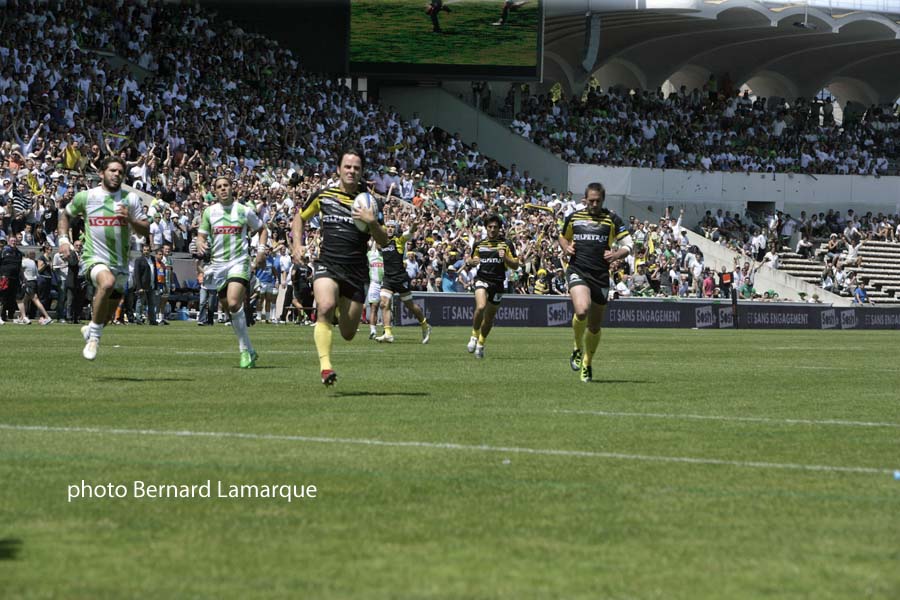 C’est sous l’œil d’André Boniface qui avait brandi le bouclier de Brennus sur cette pelouse en 1963 devant 39.000 spectateurs (bientôt 50 ans) et de Guy Accocebéri que s’est déroulé ce match d’une grande intensité car dès le coup d’envoi, les 2 équipes se sont livrées à cent pour cent. Mont de Marsan qui n’était pas favori savait que son salut passer par le jeu, envoyer du jeu pour tenter d’asphyxier l’adversaire et c’est ce que les montois ont réussi à faire, mais Pau s’est vaillamment défendu.