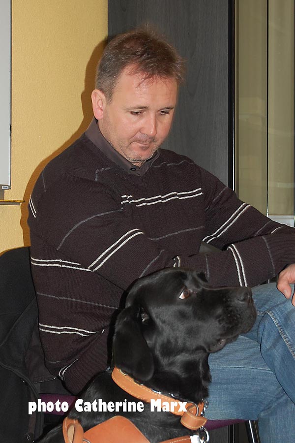 Au cours de ces deux journées, près de 350 collégiens ont écouté attentivement le témoignage d’Olivier Brisse devenu aveugle suite à une rétinite pigmentaire (maladie génétique), et ils ont pu le questionner sur les gestes de sa vie quotidienne et le rôle d’Elton acquis il y a 3 mois.