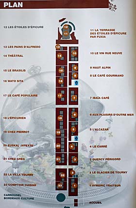 Les amateurs vont retrouver en plein air quelques adresses bordelaises qu’ils apprécient comme Chez Greg, le Comptoir Cuisine, l’Ibaïa Café, le Brasilia, l’Alcazar, Le carré, Le Café Populaire, La Villa Tourny, Le Théâtral qui est en fait le "mariage" du Théatro et de Lacoste Traiteur, le Vin Rue Neuve, le Wato-Sita, L’Epicurien, Le Glacier de Tourny, ainsi que Chez Pierrot de Carcans avec aussi Les Pains d’Alfredo et la Terrasse des Etoiles d’Épicure par Fuxia. On retrouvera aussi à leurs côtés les Plaisirs d’Outremer, Aymeric Traiteur, Euskadi Jatexte, le Haut alpin et Quercy Périgord qui apporte une touche "exotique" dans ce rassemblement avec leur coloration locale. Pour sa part le restaurant gastronomique Les Etoiles d’Épicure accueillera pour des soirées d’exception : François Adamski (Le Gabriel), Vincent Arnould (Le Vieux Logis), Philippe Arambide (Hôtel Les Pyrénées), Cedric Béchade, Thomas Brasleret (Ze Rock), Stéphane Carrade (La Guérinière), Jean Cousseau (Le Relais de la Poste), Christophe Dupouy (Les Pieds dans le plat), Christophe Girardot (Gastronomie Aquitaine), Nicolas Magie (Le Saint-James), Nicolas Masse (La Grande Vigne), Thierry Renou (Le Patio), Jean-Luc Rocha (Cordeillan-Bages), Norbert Tarayre (Top Chef), Stéphane Tournié (Les Jardins de l’Opéra), Benjamin Toursel (Le Prieuré). Ainsi Chaque soir un chef officiera autour d’une création culinaire avec dégustation de vins commentées par un professionnel. Dans ce cadre Les Epicuriales proposent de profiter de soirées décontractées auprès des grands noms de la gastronomie qui avec une démonstration de cuisine feront déguster un menu unique (entrée, plat, fromages, dessert) spécialement élaboré par un grand chef. Pendant 16 soirée ces chefs tour à tour présenteront leur création d’un soir aux Etoiles d’Epicure.
